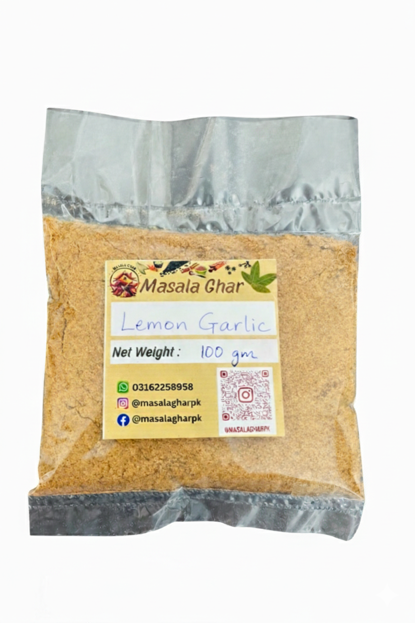 Add a zesty and aromatic twist to your dishes with Masala Ghar Lemon Garlic Masala. This perfectly balanced blend combines fresh lemon tang with rich garlic flavor, giving your chicken, fish, vegetables, or BBQ a mouth-watering, restaurant-style taste.