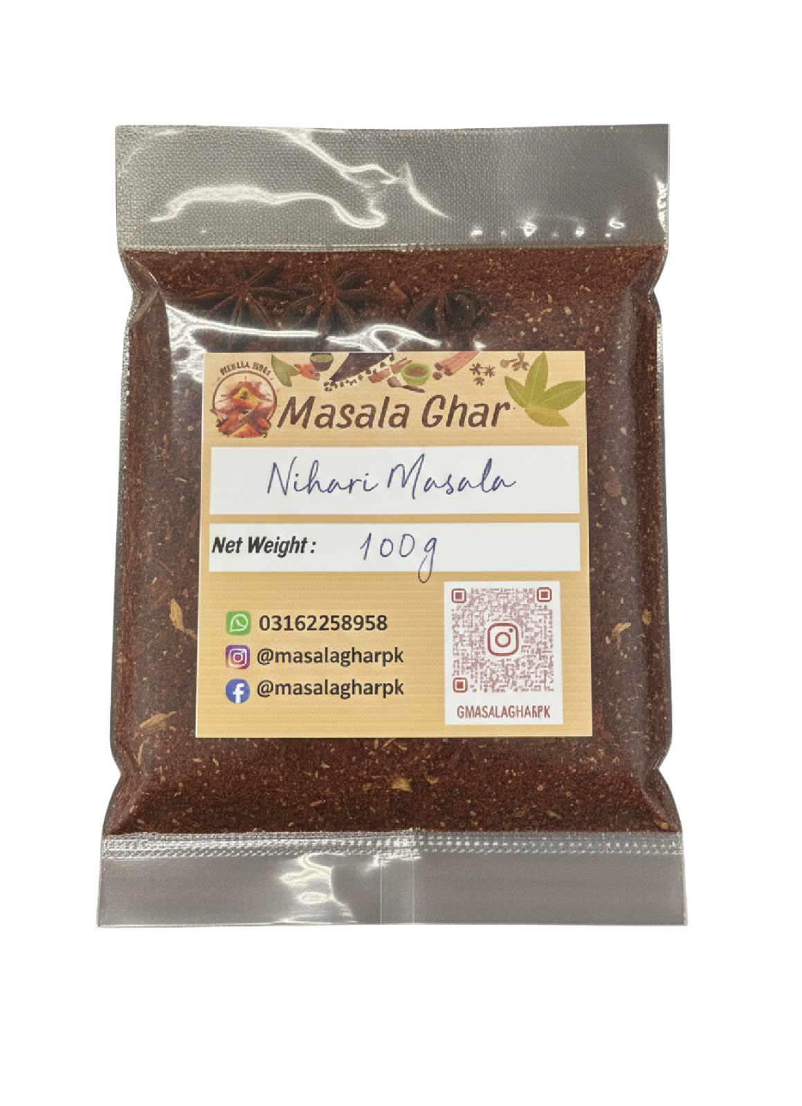 Bring authentic, slow-cooked Pakistani flavor to your kitchen with Masala Ghar Nihari Masala. Crafted from premium whole spices, this rich blend delivers a deep, aromatic, and hearty taste—perfect for traditional beef, mutton, or chicken nihari.